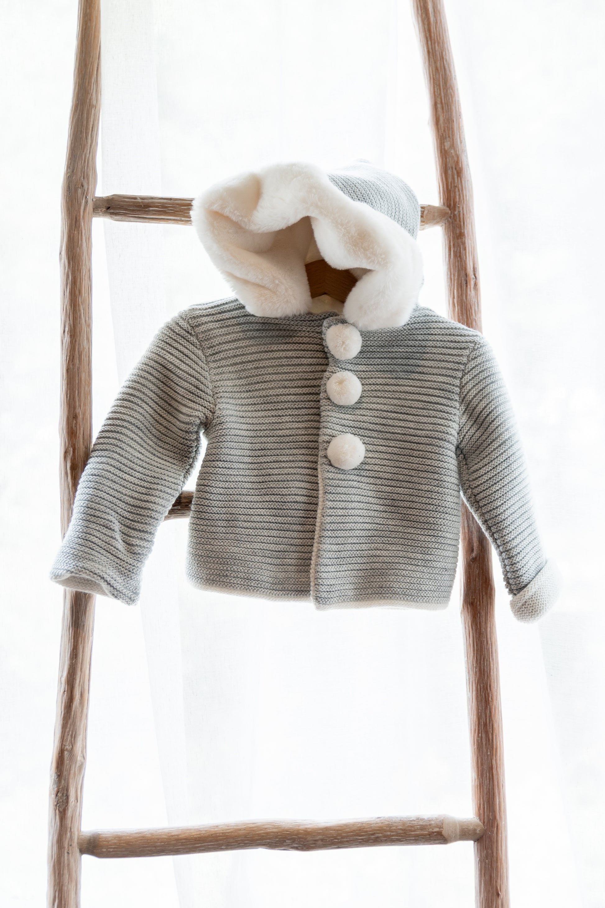 Abrigo Botones Pompón Gris